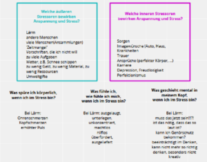 Im Gespräch über die individuellen Stressoren lernen die Teilnehmenden wie verschieden Stress erlebt wird. der Perspektivwechsel hilft zu erkennen, wann oder wodurch sie selbst zum Stressauslöser werden und andere in „Schwingungen“ oder in „Starre“ bringen.