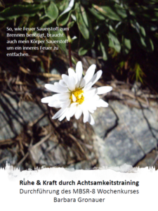 Ablauf und Inhalte eines MBSR-Kurses sind im zertifizierten Programm festgeschrieben. Je nach Kontext können diese individuell ewrweitert werden, z.B. durch kreativitätsförderliche Übungen.